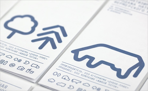 In fact the entire visual identity is built on a clear and deliberate system of symbols, which collectively describe the milk's path from cow to consumer. In terms of colours, the designers restricted their palette to only blue and white for added emotional appeal.