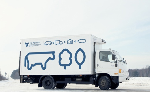 The concept behind the logo was inspired by the particular nature of the client's business activity; namely, the automated sale of farm-fresh milk via a chain of vending machines. The company’s name, A-moloko, which was also formulated by Ermolaev Bureau, influenced the logo's design as well. For instance, the first letter “A”, when turned upside down, is meant to resemble a cow's teat.