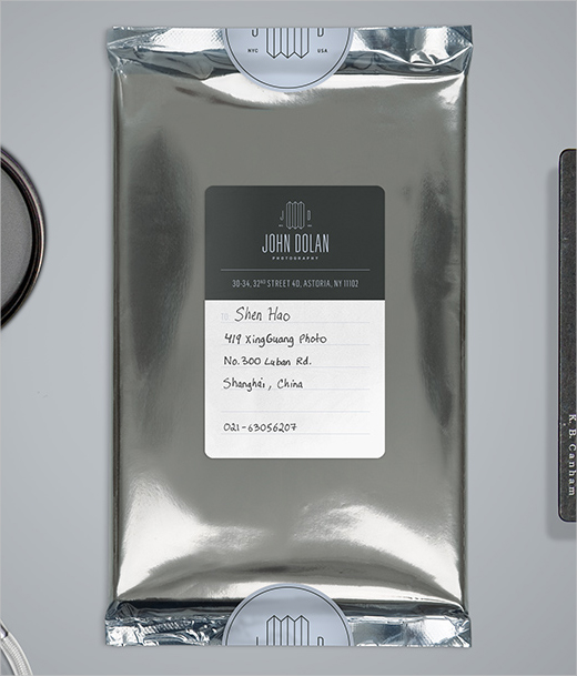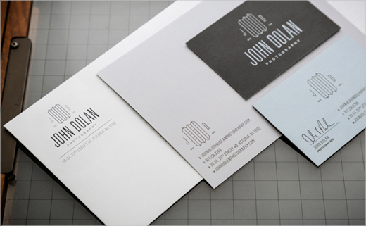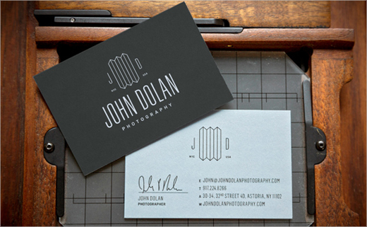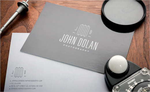 Boston-based design consultancy Bluerock Design based the logo on the form and shape of John's 4×5 camera bellows; thereby creating a mark that is geometric, spacial, and iconic to John's specific media. The repeating pattern of the bellows icon also mimics the abstract forms of John's initials. The further addition of condensed typography balances the tall and compressed forms of the logo.