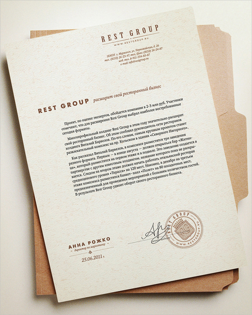 Graphic designer Pavel Emelyanov, who heads agency Eskimo Design Studio in the city of Murmansk, was tasked by Rest Group's management to create and devise an entirely new identity system.