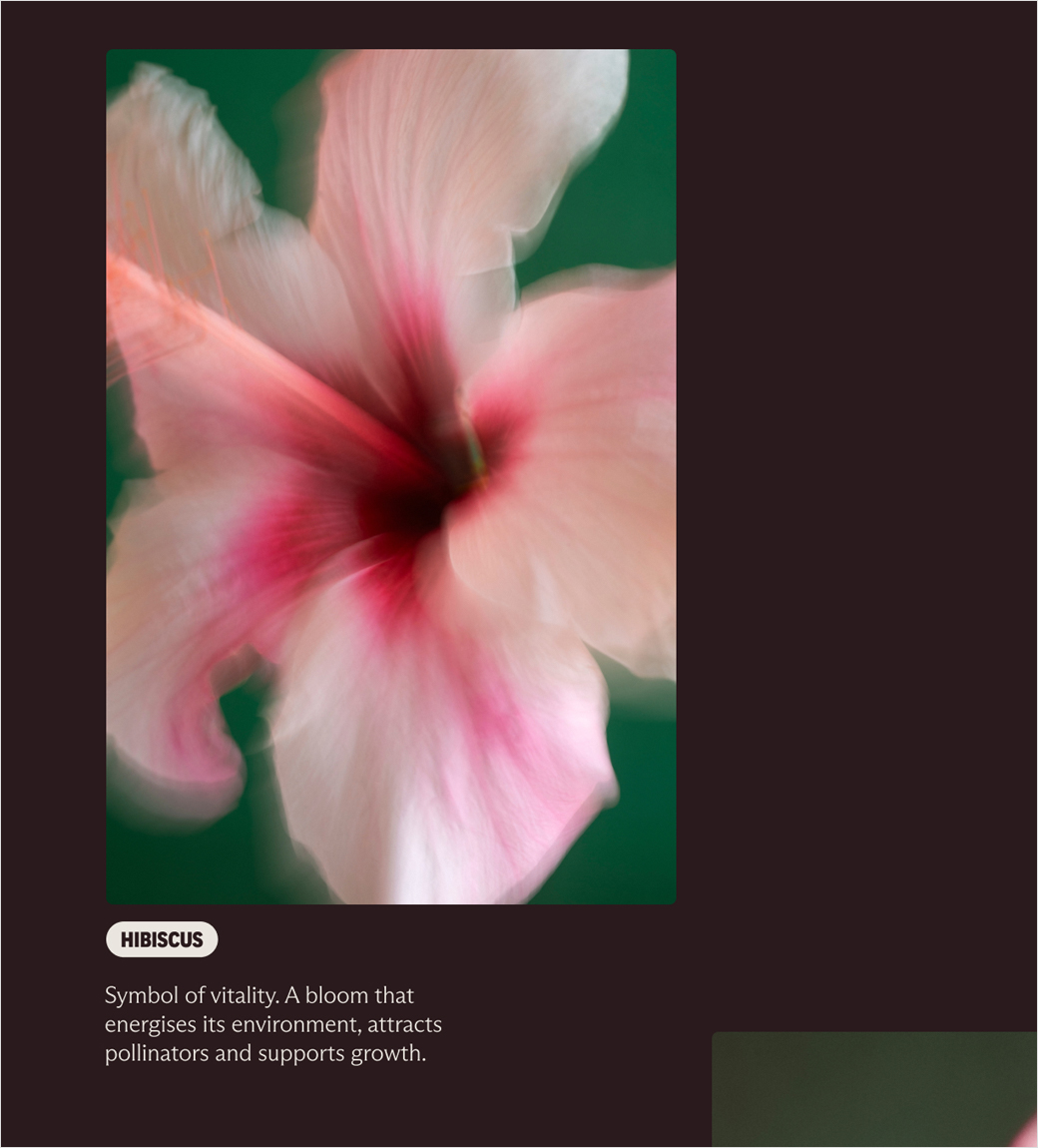 "It became clear early on that this central idea of cultivation would run as a strong creative thread through the entire brand. We leaned into it fully, crafting a brand that reflects this sense of growth across every element, from the flora photography and image-making techniques to the colour palette, language and motion behaviours," adds Dave Raxworthy, founder and creative director at Sundry Studio.