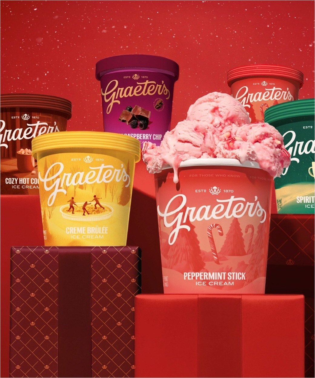 Changes include updated packaging that is said to express "joy, indulgence, and distinction"; a new colour scheme that reintroduces the brand's signature maroon; fresh patterns; and a crown icon that honours both Cincinnati, known as the Queen City, and Graeter's "royalty" in the ice cream realm.