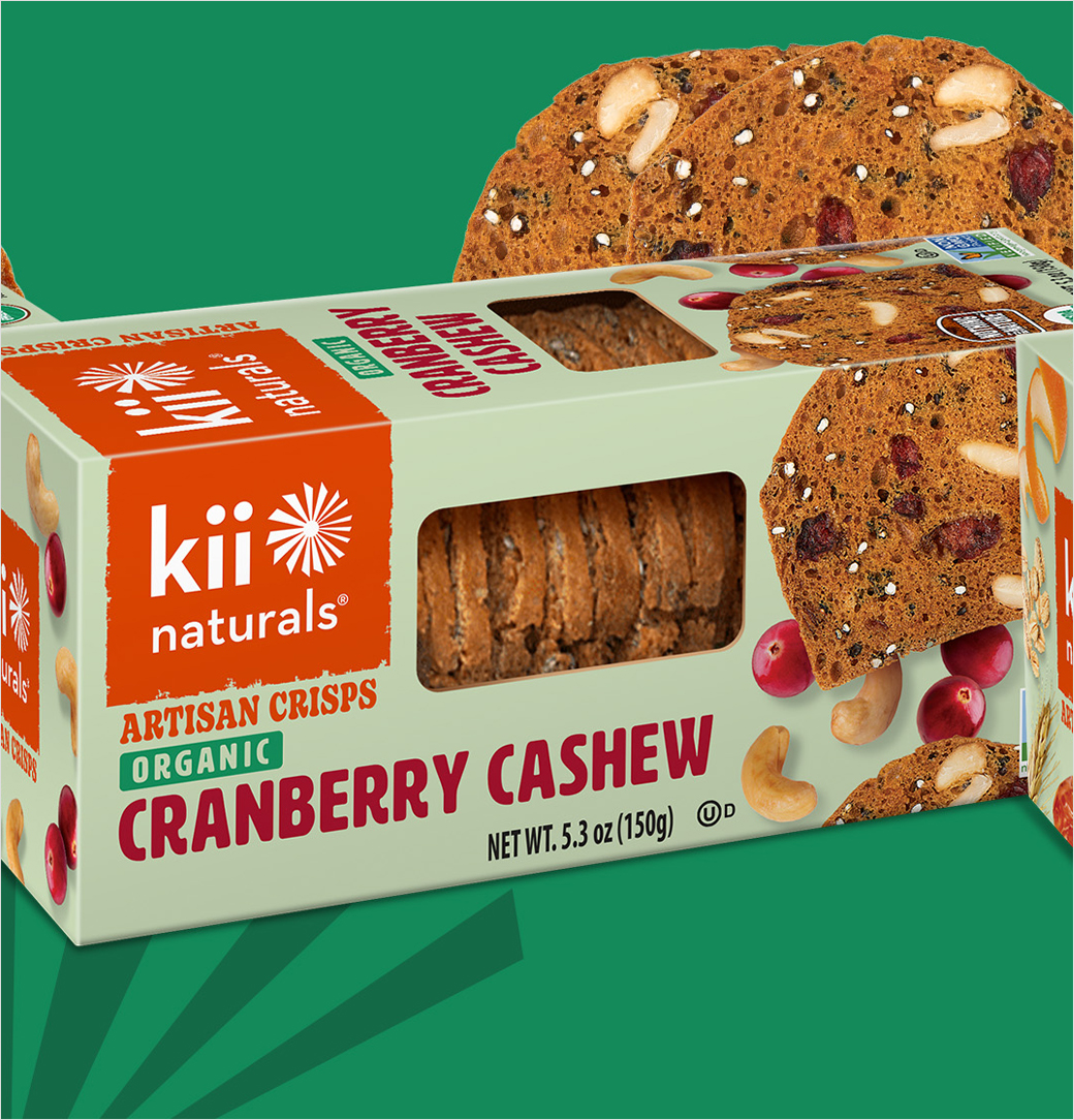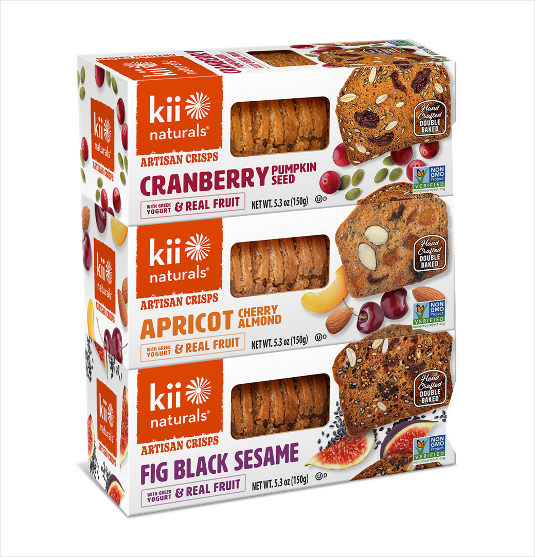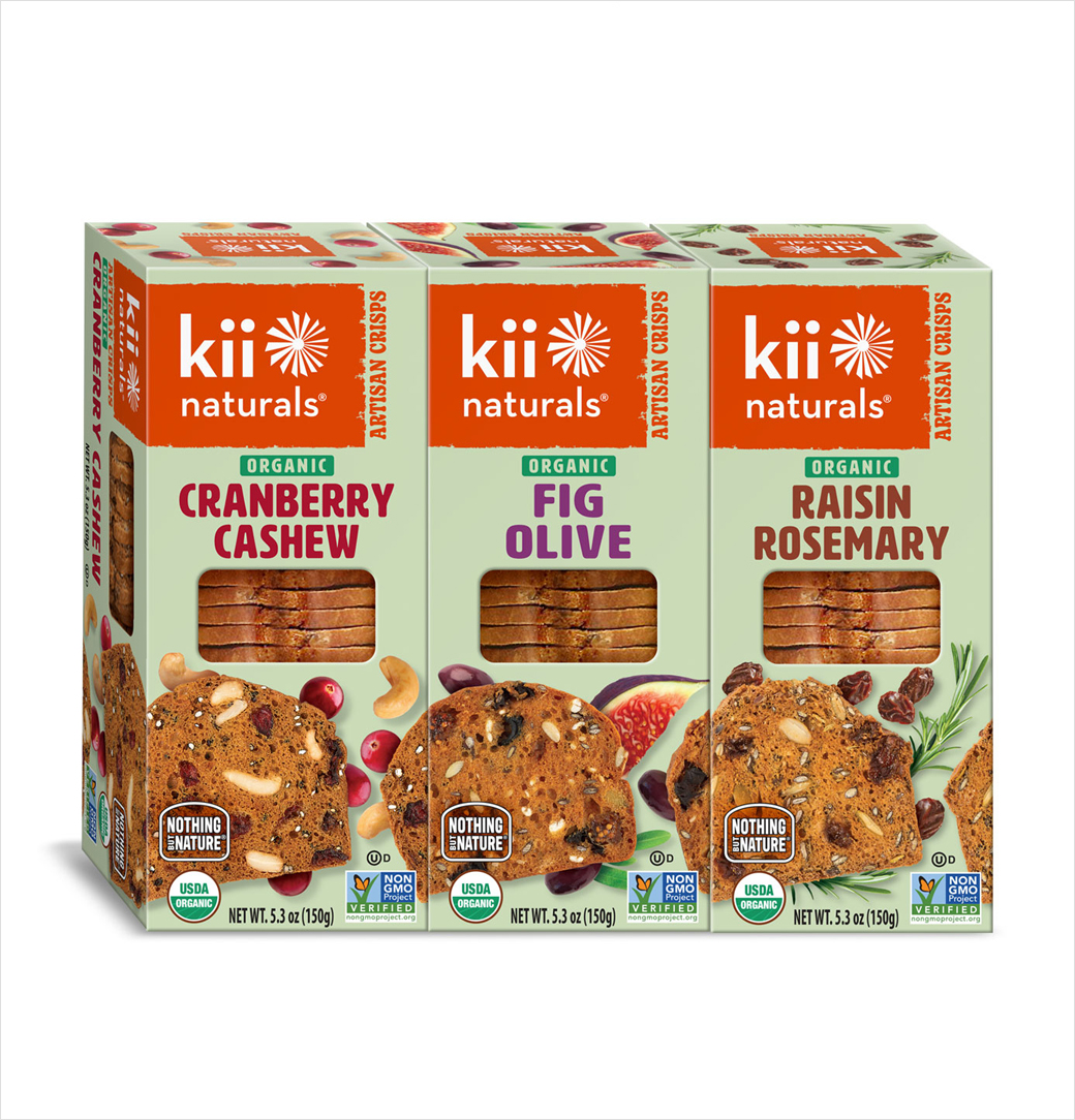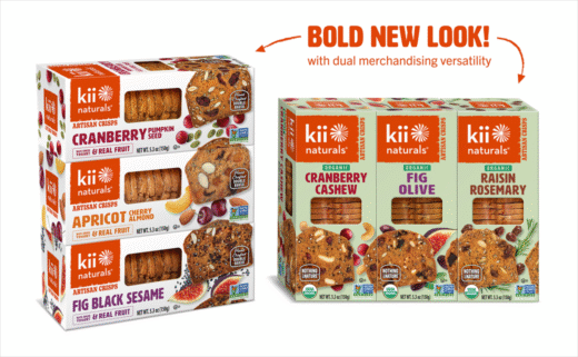 Kii Naturals has introduced a new brand design and packaging, along with what they claim are the only certified organic double-baked crackers available in North America.